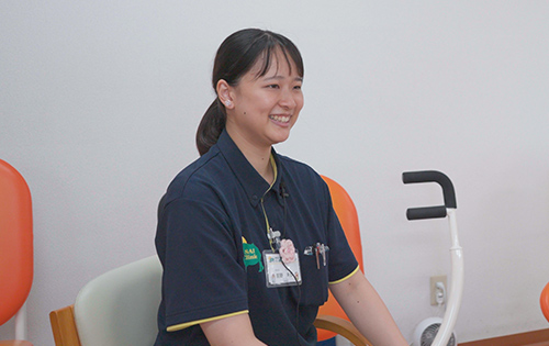 主にリハビリテーションルームで利用者の皆さんと一緒に踊ったり、笑ったりして生活しています。