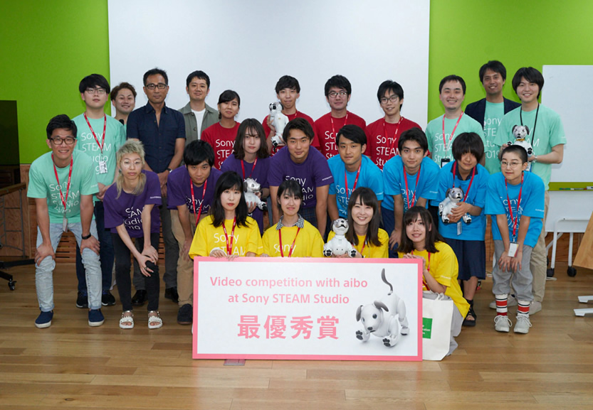 Video competition with aibo at Sony STEAM Studio 2019年8月17日にソニー本社で実施されたイベント「Video competition with aibo at Sony STEAM Studio」では、大学生がaiboのソフトウェアAPIを活用し、aiboを題材とした動画制作に挑戦しました。 詳しくはこちらをご覧ください。 ブラッシュアップした優勝作品はこちらです。!!